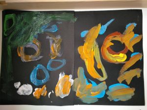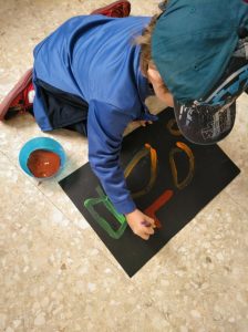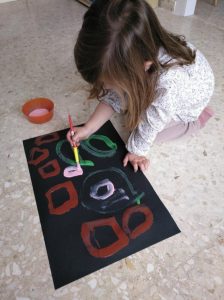 Realizamos una actividad muy completa. Al son de Vivaldi (Wagner, gran admirado por el pintor, ¡lo reservamos para otra ocasión!) practicamos la técnica del pintor ruso Vasili Kandinski que trabajó el color con la psicología de las formas.